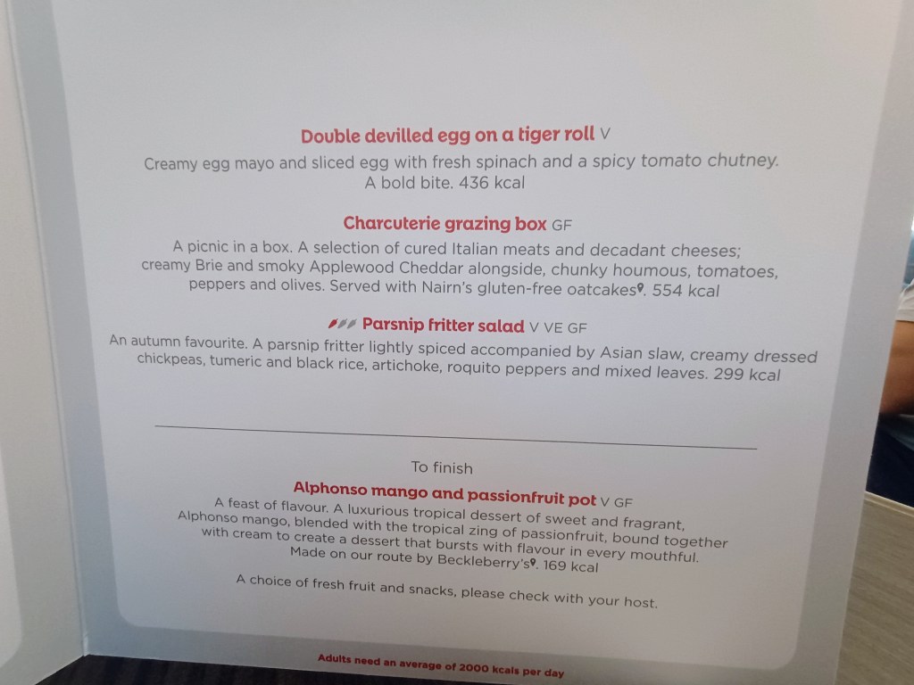 The service on board was second to none, and I even had room for the passion fruit dessert, it was nice to see a gluten free dessert option. I asked about other gluten free options and was told that the crisps were probably gluten free, but they advised i checked the ingredients , just in case they had changed. This wasn’t a problem.