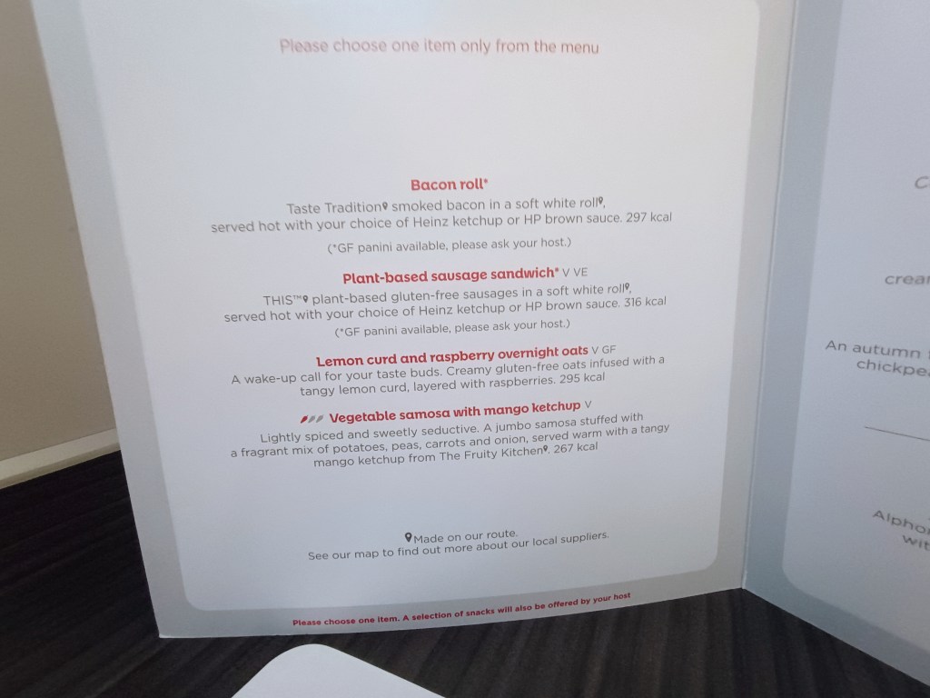For my visit to Darlington for the S&DR 200 anniversary weekend, I decided to travel up using LNER First Class. Needing a gluten free meal on board, I had looked at the menu before booking, and felt that the offering was good.