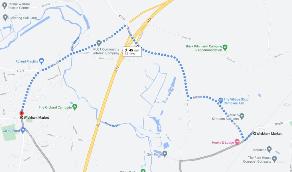 It does however take around 45 minutes to walk to Wickham Market from here. As there are no direct paths over the river. A taxi will take 10 minutes.