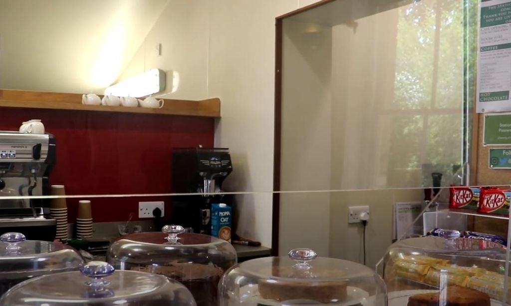 To the rear is a fantastic café, with both indoor and outdoor seating. A good variety of drinks, cakes and sandwiches are on offer, and it is a very pleasant place to spend a while whist waiting for your train.